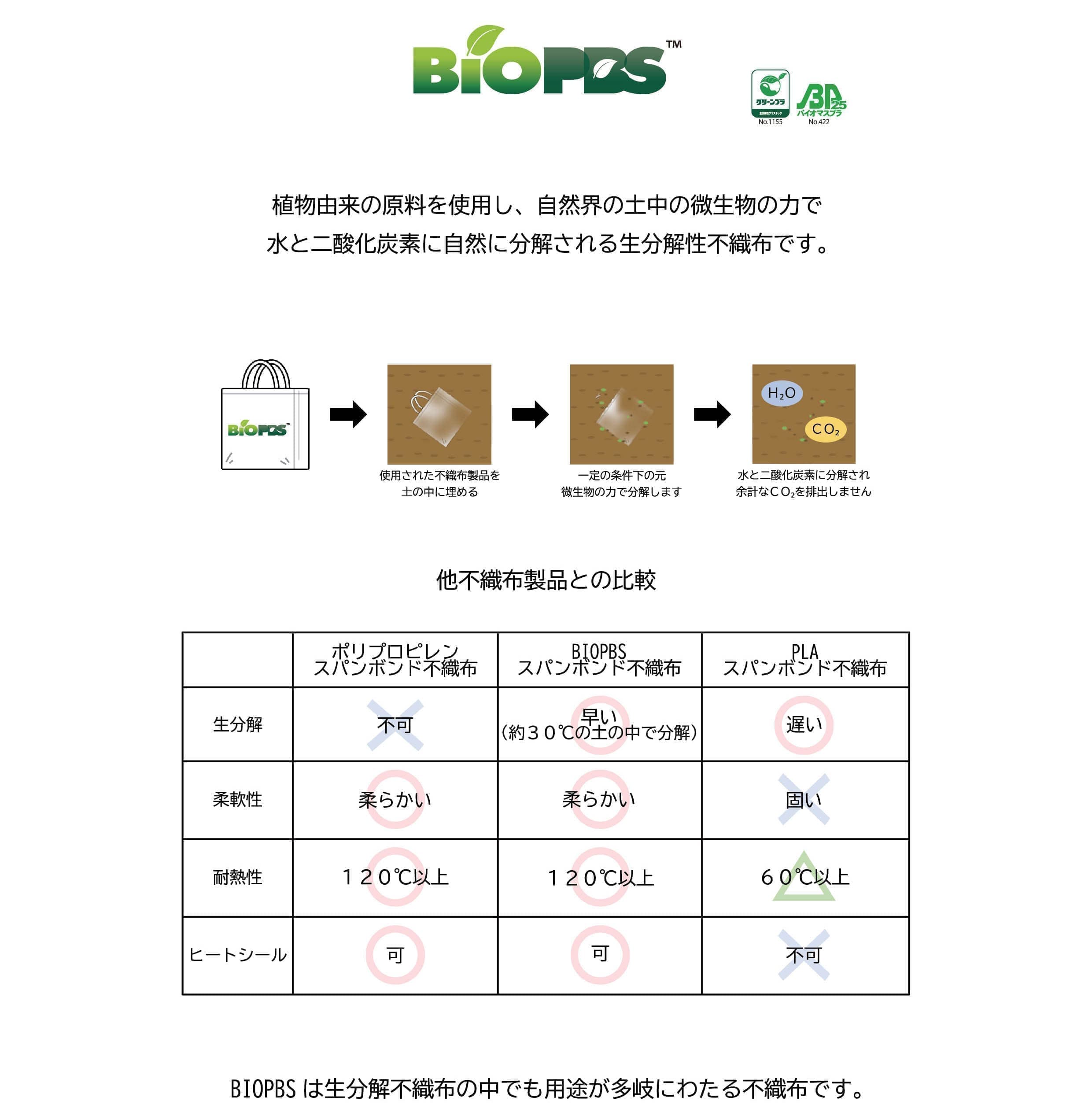 生分解性不織布 土になるバイオマス不織布BioPBS